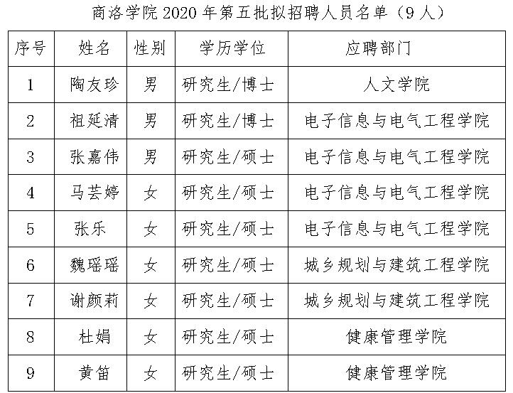 附件:太平洋在线注册官网2020年第五批拟招聘人员名单