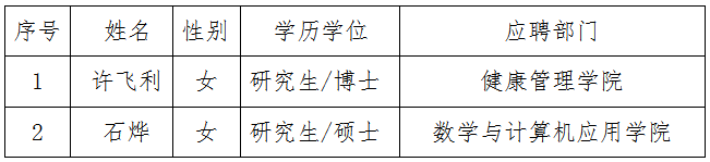 根据陕西省人社厅《关于陕西省事业单位公开招聘人员办法》规定及《太平洋在线注册官网2020年人才招聘计划》,经过资格审查、试讲、专家面试等环节考察,并经院长办公会2020年9月17日研究,同意招聘许飞利等2位同志来我校工作,现予以公示。如有异议,请于2020年9月25日前向人事处或纪委办公室反映。