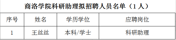 根据《关于公开招聘科研助理的通知》,经过资格审查、专家面试等环节考察,根据项目具体需要,拟聘用王丝丝同志为我校非事业编制聘用人员,现予以公示。如有异议,请于2020年12月12日前向科技处、人事处反映。
