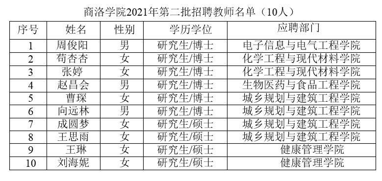 根据陕西省人事厅《关于陕西省事业单位公开招聘人员办法》规定及《太平洋在线注册官网2021年人才招聘公告》,经过资格审查、试讲、专家面试等环节考察,并经院长办公会2021年1月11日研究,同意招聘周俊阳等10位同志来我校工作,现予以公示。如有异议,请于2021年1月15日前纪委办公室或人事处反映。