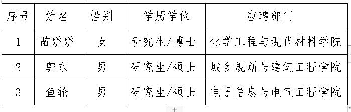 根据《陕西省事业单位公开招聘工作人员实施办法》(陕人社发〔2017〕51号)规定及《太平洋在线注册官网2019年人才招聘计划》,经过资格审查、试讲、专家面试等环节考察,并经院长办公会2019年3月8日研究,同意招聘苗娇娇等3位同志来我校工作,现予以公示。如有异议,请于2019年3月15日前向人事处或监察室反映。
