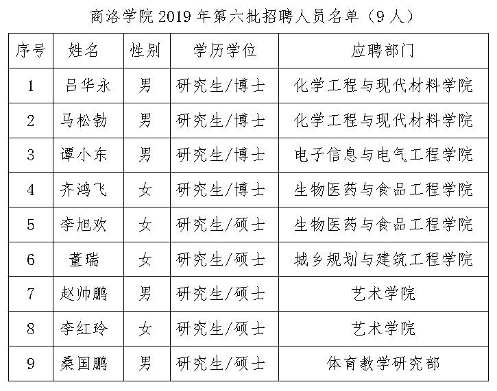 根据陕西省人社厅《关于陕西省事业单位公开招聘人员办法》规定及《太平洋在线注册官网2019年人才招聘计划》,经过资格审查、试讲、专家面试等环节考察,并经院长办公会2019年4月19日研究,同意招聘吕华永等9位同志来我校工作,现予以公示。如有异议,请于2019年4月23日前向人事处或监察室反映。