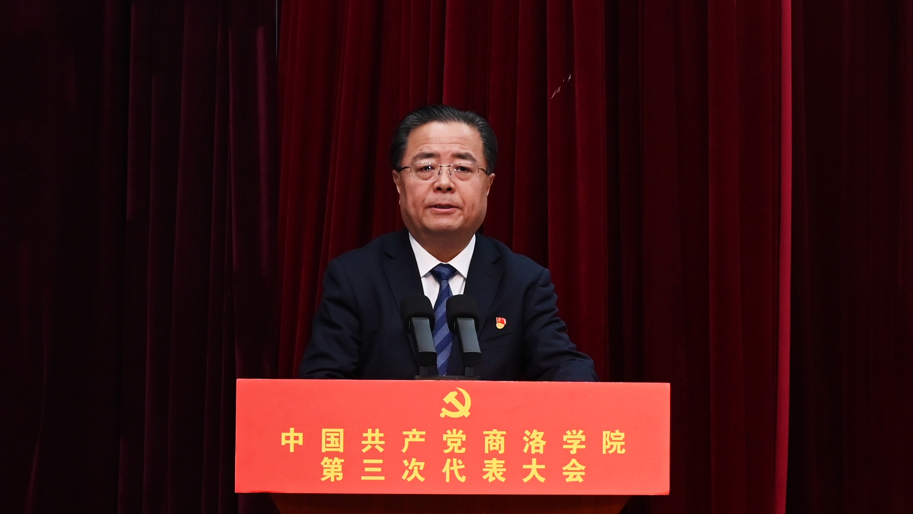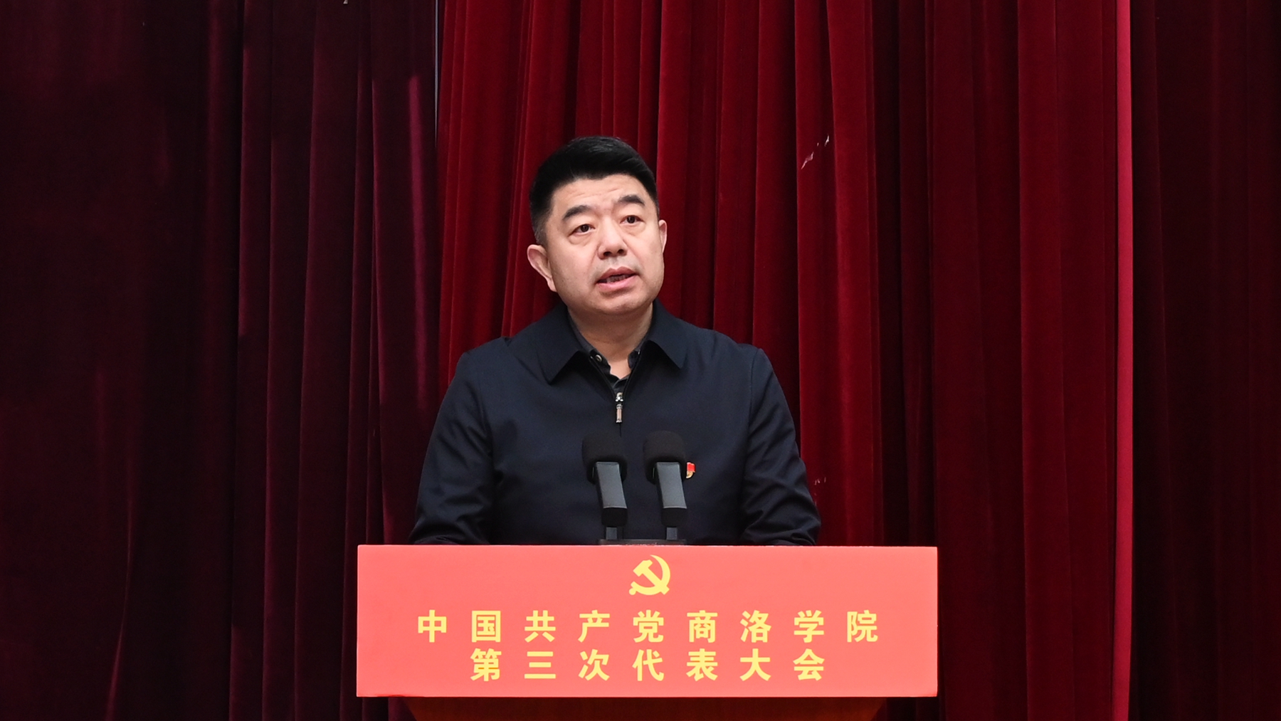 贾永安代表商洛市委、市政府对大会的胜利召开表示热烈的祝贺。他表示,自我校第二次党代会召开以来,全体党员干部师生认真贯彻落实习近平新时代中国特色社会主义思想和习近平总书记历次来陕考察重要讲话重要指示精神,全面落实建设教育强国的时代重任,秉持立足商洛、面向地方、服务基层、培养应用型人才的办学定位,不断深化改革,加快发展,取得了有目共睹的好成绩。在实现自身健康持续发展的同时,学校积极践行服务地方使命,充分发挥高校科技研发中心和人才高地的作用,引领商洛高新产业发展,助力地方脱贫攻坚和乡村振兴,为建设中国康养之都贡献了重要力量。贾永安代表商洛市委、市政府对我校提出三点希望:一是扎实做好党建工作,保持全面从严治党的严基调;二是接续开拓奋进,书写高质量发展的新篇章;三是践行服务地方使命,构建校地融合发展的新格局。