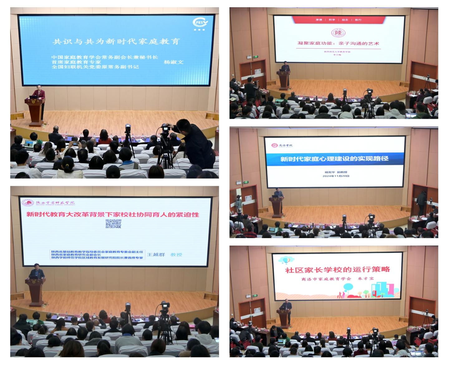 开幕式结束后,杨淑文、王越群、李少梅、我校健康管理学院副院长杨宪华、朱才宝分别以《新时代家庭教育的共识与共为》《国家教育大改革背景下家校社协同育人的紧迫性》《凝聚家庭功能:亲子沟通的艺术》《新时代家庭心理建设的实现路径》《社区家长学校的运行策略》为题作了专题报告。