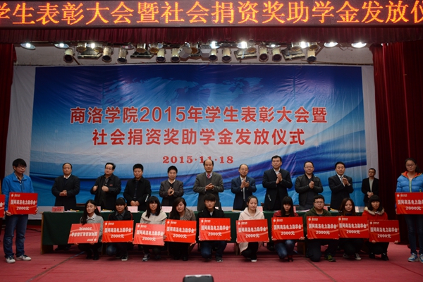 2015年,“国网商洛电力”助学金、商洛邮政“鸿雁爱心”助学金、商洛联通“沃校园”助学金、商洛电信天翼助学金、森弗爱心奖学金及助学金共资助我校学生180名,总金额38万元。