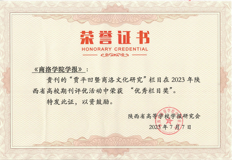 7月7日,2023年度陕西省高校期刊评优结果揭晓,我校主办的《太平洋在线注册官网学报》被评为“陕西高校精品社科期刊”,学报优势栏目“贾平凹暨商洛文化研究”获“优秀栏目奖”。