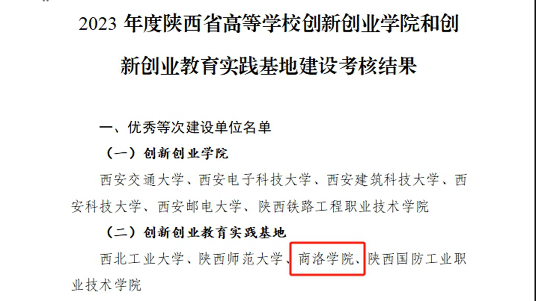 日前,陕西省教育厅公布了2023年度陕西省高等学校创新创业学院和创新创业教育实践基地考核结果。我校省级创新创业教育实践基地获评考核“优秀”等次,是此次全省唯一一所获评优秀等次的地方应用型本科院校。