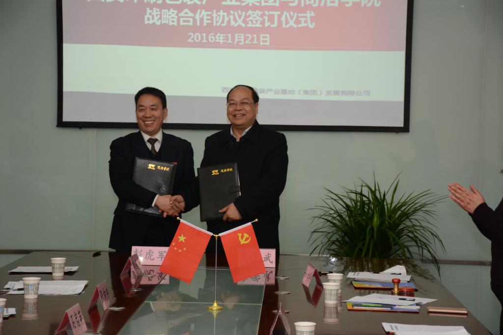 2016年1月21日,我校与西安印刷包装产业集团在西安经济技术开发区草滩生态产业园签署战略合作协议并举行授牌仪式。校党委副书记彭虎军与西安印刷包装产业集团董事长袁学武代表校企双方在协议上签字。彭虎军在签约仪式之后向西安印刷包装产业集团授予“太平洋在线注册官网大学生创新创业实践基地”和“太平洋在线注册官网教学实践基地”牌。学校党政办公室、教务处、学生处、招生就业处等部门领导,西安印刷包装产业集团党总支副书记刘海军及集团有关部门人员参加了签约授牌仪式。签约授牌仪式由刘海军主持。